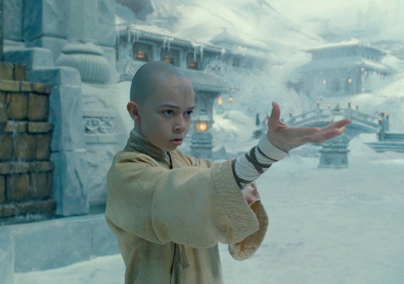 Protagonista: ao menos os personagens do desenho foram respeitados e trazidos para o longa, o problema é que certa leveza e humor foram esquecidos em prol de um épico soturno e enfadonho. Aang (Noah Ringer) é o protagonista, um jovem monge, que é o escolhido (para variar) e o único capaz de controlar os quatro elementos.